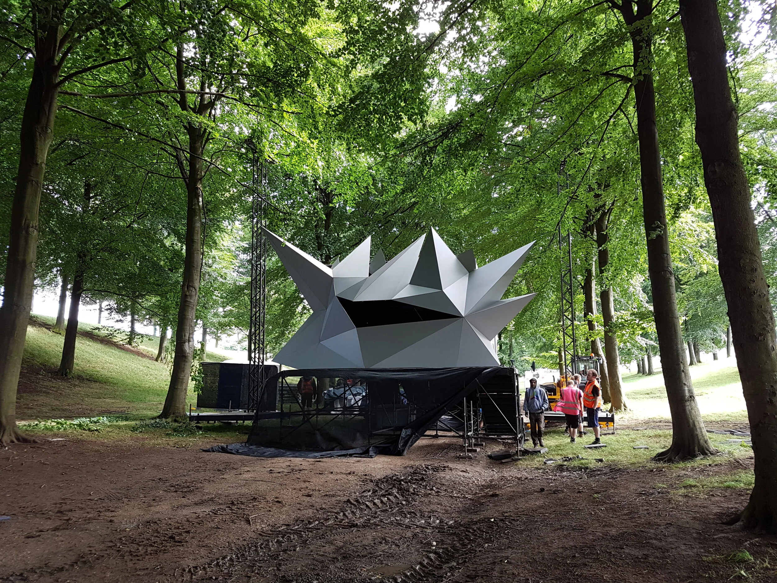 To develop designs then manufacture and install a complex stage structure at Leeds Festival.